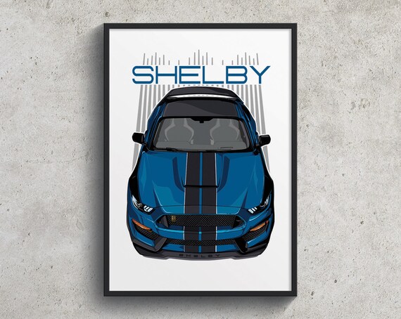 Ford Mustang Shelby Gt350 Poster Blue And Black Gt350 Poster Shelby Wall Art Mustang Decor